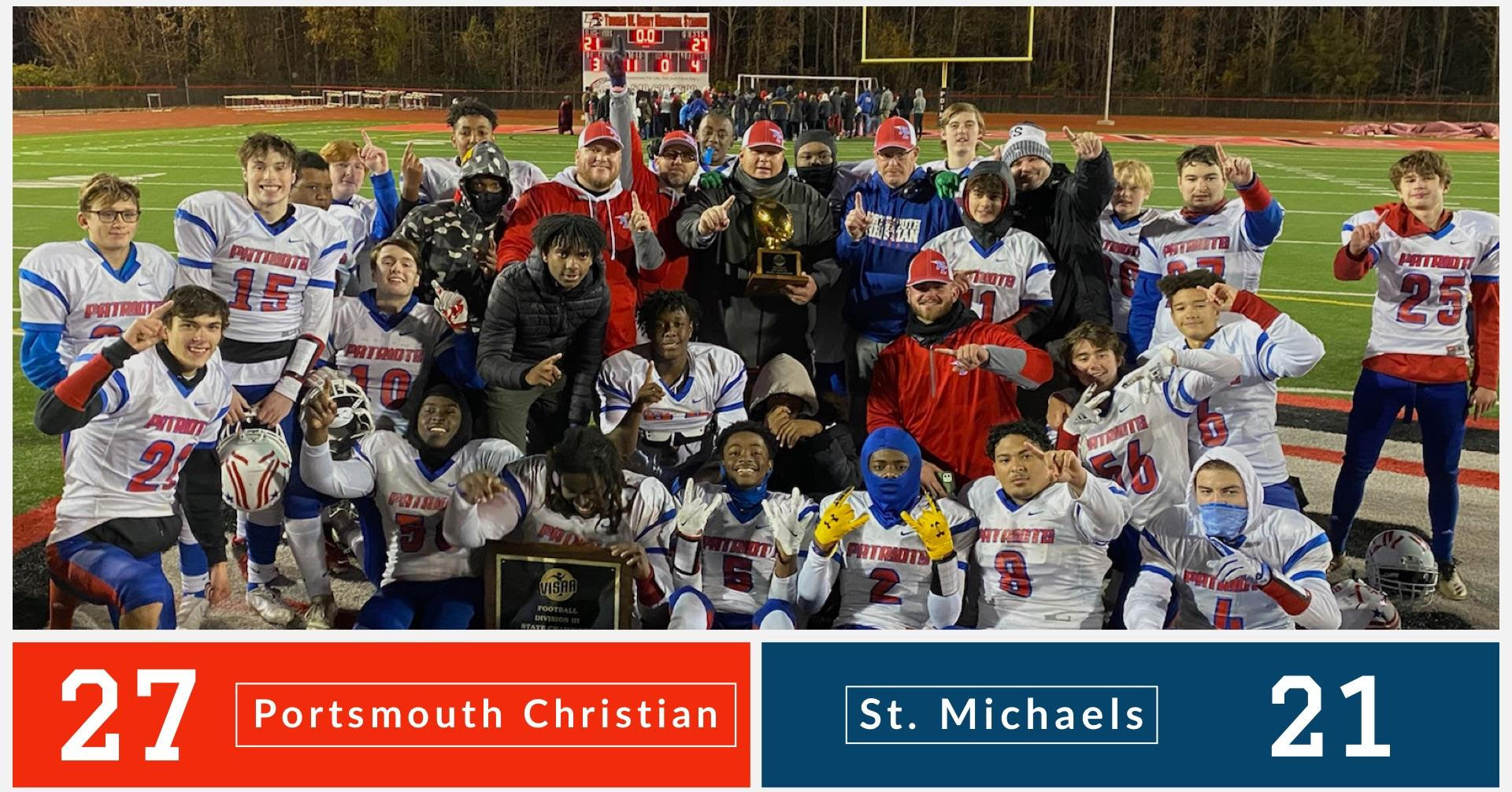 Our Portsmouth Christian Patriots football team had a record breaking year! The 2021 Patriots had the most wins, fewest losses, most points in a season, most points in a game, fewest points allowed in a season, most shutouts and best record in school history. This great season culminated with the very first State Championship win in the history of Portsmouth Christian School. We are most proud of this accomplishment! Congratulations to our outstanding coaches, players and Patriot fans!. I Corinthians 10:31 …to God be the Glory!
